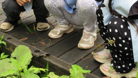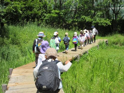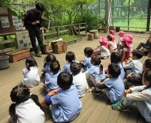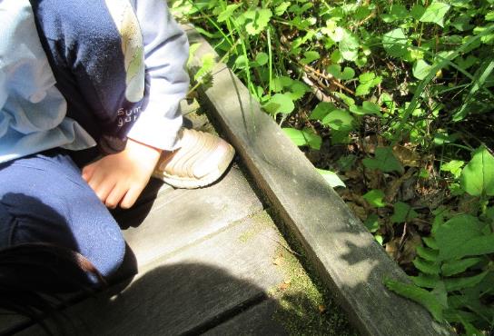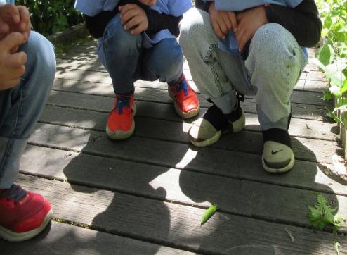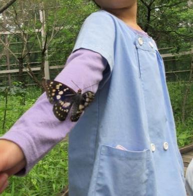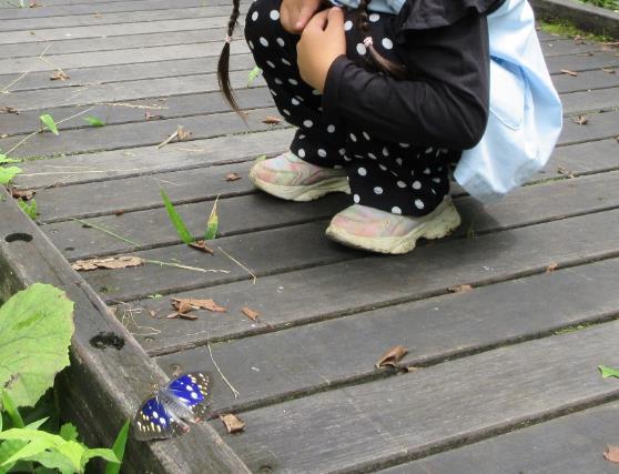 オオムラサキセンター 自然とともに 2024.04.192024.09.13 年長組は、しらゆり保育園のおともだちと一緒に電車に乗ってオオムラサキセンターへ行きます。 ムーちゃん(幼虫)は葉っぱに隠れていて、かくれんぼしてるみたい。「がんばって見つけちゃうぞ」 もう一度ちょうちょになった姿も見に行って、成長する姿を実際に確認してきました。 前に来たことを覚えていてくれたのかな?すっかり仲良しになりました。