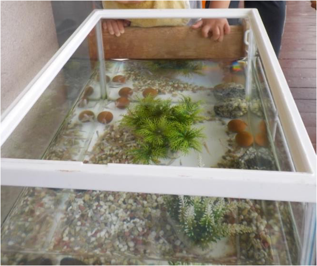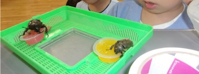 小動物とのふれあい 自然とともに 2024.08.05 ザリガニ・セミ・カブトムシ・クワガタ・カマキリ・バッタ・ダンゴムシ・トンボ・アリ・チョウチョ…子どもたちは虫を見つけると大興奮。 メダカも興味いっぱいの小動物です。卵を産んで赤ちゃんメダカがどんどん増えてメダカの学校はマンモス化。