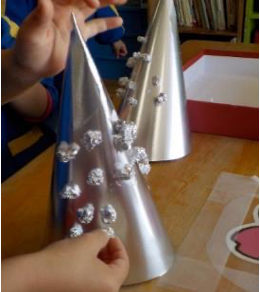 いろいろな材料を使って、さまざまな表情の鬼ができました。